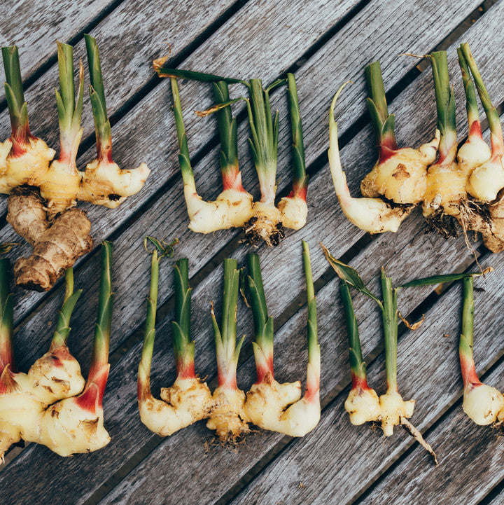 After about 4 months, you can begin to harvest the ginger by removing the entire plant - roots, shoots, and all - from the soil and slicing of fresh ginger as needed! When you have removed the amount you want, you simply replace the plant in the soil and let it continue to grow!