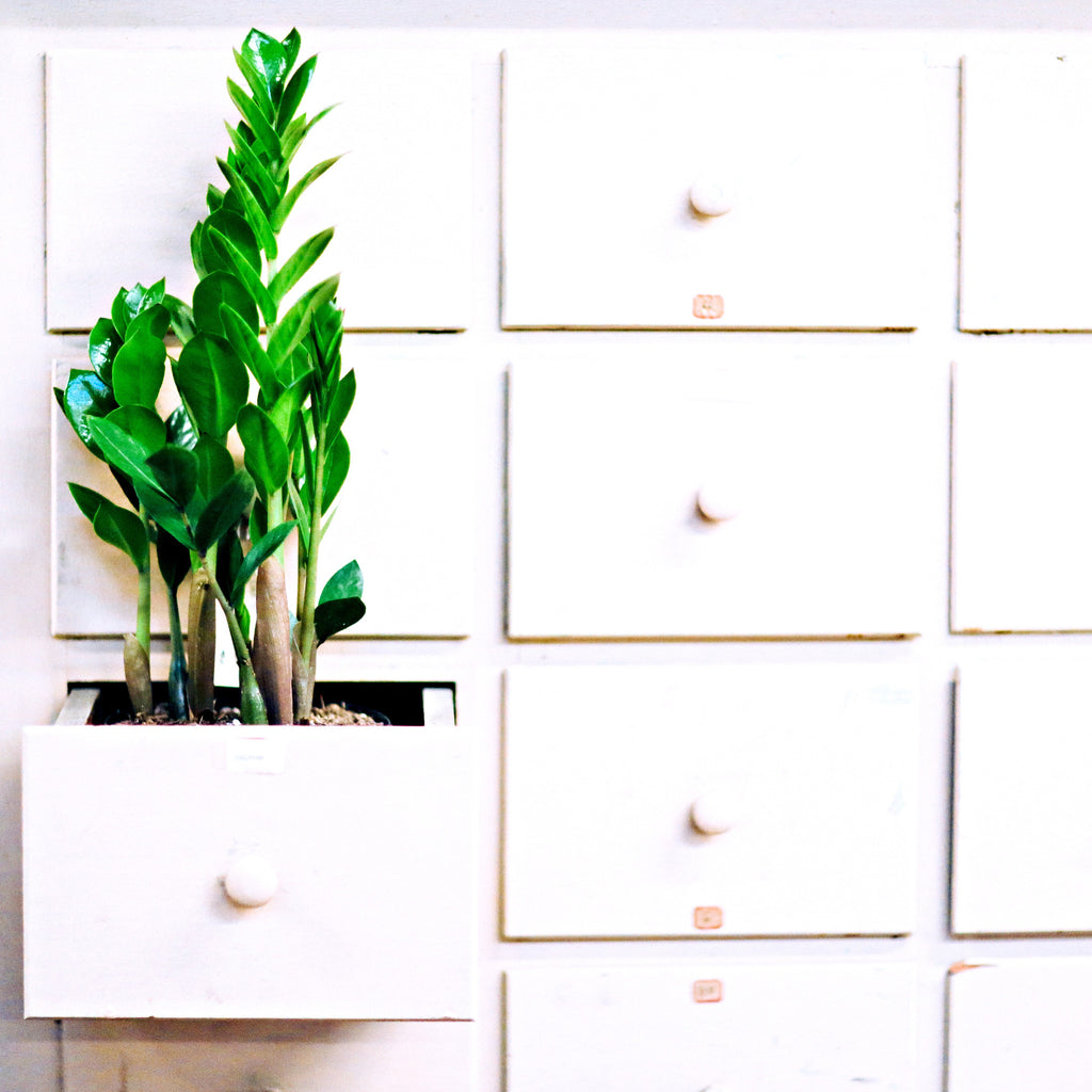 ZZ plant is a succulent plant with long arching stems that give it a full, bushy shape. It’s leaves are dark green and super shiny, and just about the only way you can kill this plant is to overwater it. Once every two weeks is plenty. ZZ plant starts out small, but may eventually outgrow your windowsill. In which case, move it to the floor and let it brighten up a dark corner.